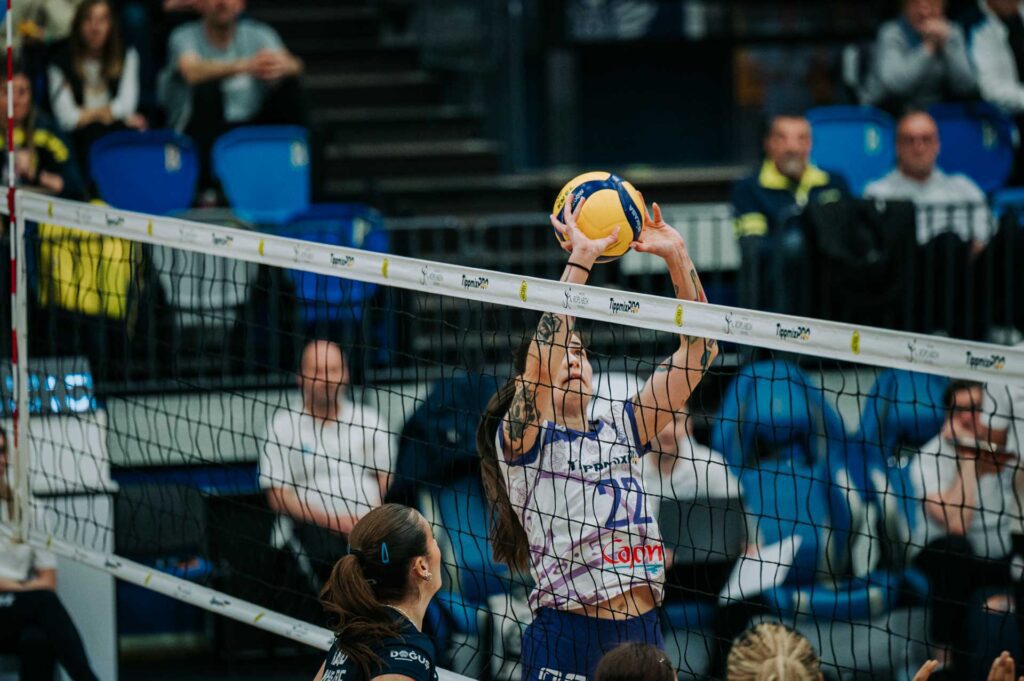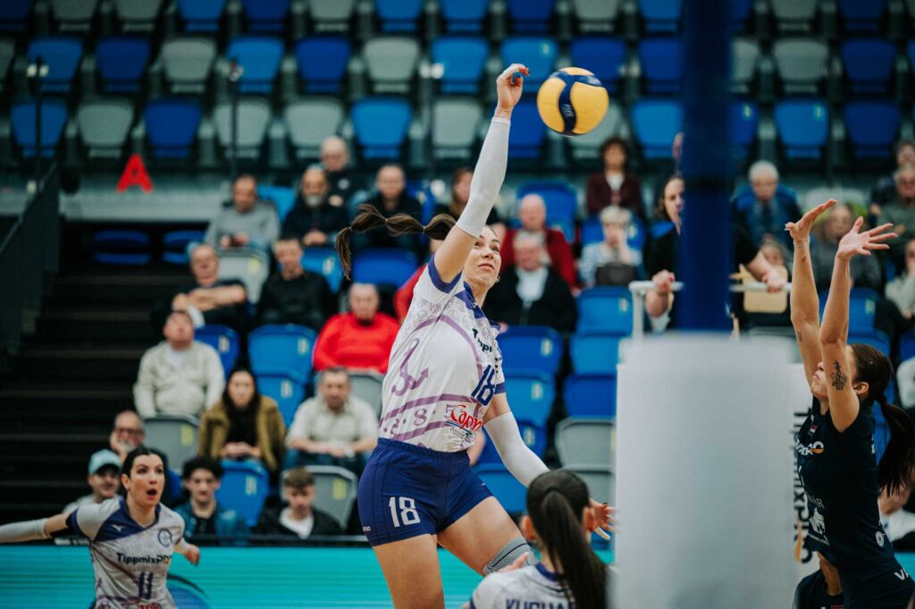 Nem ilyen mérkőzést képzeltünk el, pedig minden remekül indult. A múlt héten érkezett amerikai átlóval Mutiri-vel a kezdőben, a Kucharska, Ambrosio, Nacsa-Pekárik, Pezelj és Yordanova kezdő hatos magabiztos szervákkal került előnybe, az első szett közepén már három egységgel voltunk a hazaiak előtt. (13:9) Dinamikus játékunkat ellenfelünk időkérése megtörte, zsinórban négy ponttal gyorsan fordítottak, és nagy fordulatot is vett a meccs képe. A két szélső ütőjük sorra termelte tovább a pontokat, Rabellot és Fedyk-et nem tudtuk tartani, így tapadni sem tudtunk ellenfelünkre, akik állva hagyták a mieinket. Amíg mi három pontot szereztünk, ők 16-ot, így viszonylag simán nagy különbséggel le is zárták a szettet. (25:16, 1:0)