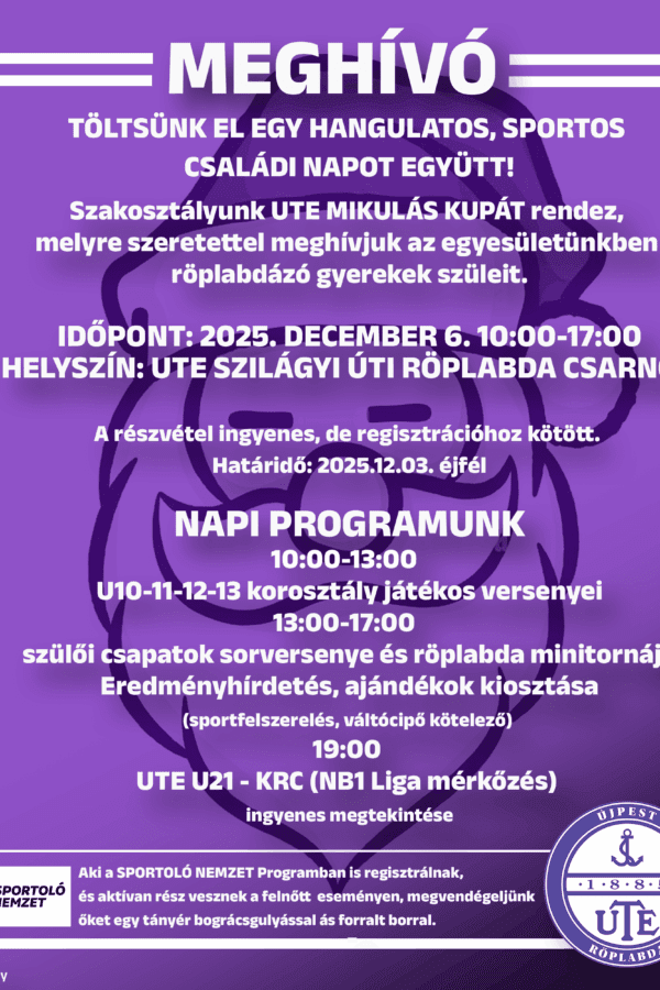 Töltsünk el egy hangulatos, sportos családi napot együtt! Szakosztályunk UTE MIKULÁS KUPÁT rendez,melyre szeretettel meghívjuk...